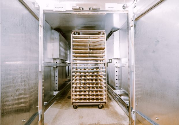 Les produits sont refroidis à moins de 4 °C après cuisson afin de garantir leur sécurité alimentaire et préserver leur qualité. Cette température limite le développement des micro-organismes et des enzymes, tout en stabilisant la texture et les arômes. Grâce à ce refroidissement rapide, chaque viennoiserie conserve son moelleux et sa fraîcheur avant la congélation.