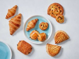 Le quadriptyque croissant, pain au chocolat, pain aux raisins et chausson aux pommes décliné en plusieurs recettes (beurre fin ou beurre Charentes Poitou AOP) et formats (20g à 80g) répond à tous les gourmets.
